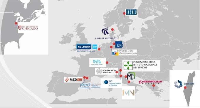 Στη φιλόδοξη αυτή συλλογική προσπάθεια ενώνουν τις δυνάμεις τους 16 από τους πλέον αξιόλογους ευρωπαϊκούς και διεθνείς φορείς: Fondazione IRCCS Istituto Nazionale dei Tumori (INT, Milan, Italy) που είναι και ο συντονιστής της Κοινοπραξίας με Κύριο Ερευνητή την Dr. Arsela Prelaj, Politecnico di Milano (POLIMI, Milan, Italy), Istituto di Ricerche Farmacologiche Mario Negri (IRFMN, Milan, Italy), Istituto Europeo di Oncologia (IEO; Milan, Italy), ML Cube (Milan, Italy), LungenClinic Grosshansdorf GmbH (GHD, Grosshansdorf, Germany), Universitaetsklikimum Hamburg-Eppendorf (UKE, Hamburg, Germany), Institut d’Oncologia Vall d'Hebron (VHIO, Barcelona, Spain), Medica Scientia Innovation Research (MEDSIR, Barcelona, Spain & New Jersey, USA), Metropolitan Hospital (Δ’ Ογκολογική Κλινική & Πρότυπο Κέντρο Κλινικών Μελετών, MH, Pireas, Greece), Shaare Zedek Medical Center (SZMC, Jerusalem, Israel), Katholieke Universiteit Leuven (KUL, Leuven, Belgium), Institutet for Halso-OCH Sjukvardsekonomi Aktiebolag (IHE, Lund, Sweden), the University of Chicago (UOC, Chicago, USA), Aalborg Universitet (AAU, Aalborg, Denmark), Lung Cancer Europe (LUCE, Bern, Switzerland).