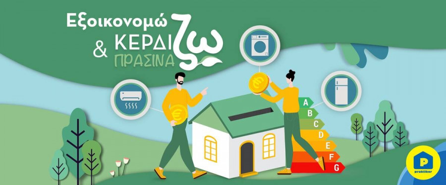 Παράλληλα, η Praktiker μας εκπαιδεύει, μέσω του “Εξοικονομώ και Κερδίζω πράσινα”, πως, αντικαθιστώντας την παλιά μας συσκευή ψύξης, πλύσης και κλιματισμού, με συσκευές νέας τεχνολογίας, συμβάλλουμε στη μείωση εκπομπών ρύπων, εξοικονομώντας χρήματα. Ακόμη, με το πρόγραμμα “Ανακυκλώνω και Κερδίζω πράσινα” επιδοτείται ποσοστό του πραγματικού κόστους αγοράς κάθε νέας συσκευής κερδίζοντας δωροεπιταγές ανακύκλωσης, έως και €100 για επόμενη αγορά, ενώ έχει ήδη ανοίξει στην ιστοσελίδα της, ειδική φόρμα εκδήλωσης ενδιαφέροντος για να ενημερωθούμε πριν από όλους για το αναμενόμενο πρόγραμμα επιδότησης «Ανακυκλώνω - Αλλάζω συσκευή».