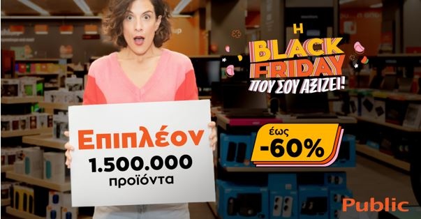 Και για εμάς, που δεν βλέπουμε την ώρα να ικανοποιήσουμε τα «θέλω» όλης της οικογένειας, αρκεί να γνωρίζουμε πως τα Public μας κάνουν το καλύτερο δώρο. Ποιο είναι αυτό; Υπερδιπλάσια προϊόντα, για να ζήσουμε τις Black Friday προσφορές, όπως μας αξίζει! Ήδη έχουμε ξεκινήσει να σκεφτόμαστε πώς θα εκπλήξουμε τη μικρή πριγκίπισσα της οικογένειας, το έτερον ήμισυ ή κι εμάς τους ίδιους, προσφέροντας μοναδικά δώρα! Ποιος από εμάς, άλλωστε, θα μπορούσε να αντισταθεί σε επιπλέον 1,5 εκατομμύρια προϊόντα που έχουν προστεθεί στο ένα εκατομμύριο κορυφαία είδη τεχνολογίας, ψυχαγωγίας και οικιακές συσκευές, που πλέον μπορούμε να αποκτήσουμε, με έως και 60% χαμηλότερη τιμή;