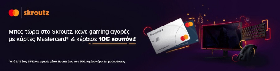 Συγκεκριμένα από τις 5 έως τις 25 Δεκεμβρίου, οι καταναλωτές που θα κάνουν τις αγορές τους με κάρτα Mastercard από την κατηγορία Gaming του Skroutz, θα κερδίζουν αυτόματα κουπόνι αξίας 10 ευρώ για τις επόμενες αγορές τους με κάρτα Mastercard σε οποιαδήποτε κατηγορία της πλατφόρμας, αξίας 50 ευρώ και άνω.