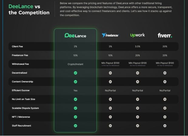 Υπερέχει σε σύγκριση με το Upwork και Fiverr αφού παρακάμπτει μεσάζοντες και μειώνει τις προμήθειες.