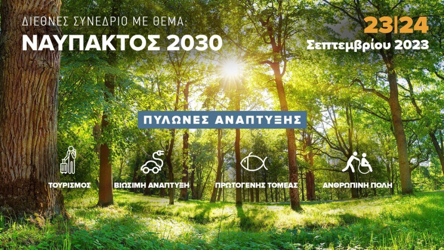 Ενδυναμώνοντας την περιφερειακή οικονομία, προωθώντας την ανάπτυξη, ενισχύοντας την απασχόληση, προωθώντας μια κοινωνία που επικεντρώνεται στην καινοτομία και εξωστρέφεια. Αυτή είναι η agenda του αναπτυξιακού συνεδρίου “Ναύπακτος 2030” που θα πραγματοποιηθεί στις 23 & 24 Σεπτεμβρίου 2023 στις άρτιες εγκαταστάσεις του Διεθνούς Συνεδριακού Κέντρου Ναυπάκτου, το οποίο βρίσκεται στην Ι.Μ Μεταμορφώσεως του Σωτήρος.