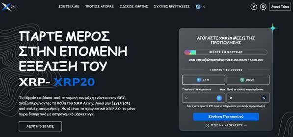 Η πρόσφατη δικαστική νίκη του Ripple ($XRP) ενάντια στο SEC οδήγησε, όπως ήταν λογικό, σε άνοδο της τιμής του. Ωστόσο, ένα νέο κρυπτονόμισμα το XRP20 έρχεται στο προσκήνιο, το οποίο αποτελεί ένα ERC20 Token στο Ethereum blockchain. Το XRP20 συγκέντρωσε τα βλέμματα των επενδυτών λόγω του μηχανισμού καύσης και Stake To Earn που προσφέρουν παθητικό εισόδημα, αναμένεται να εκτοξευθεί το προσεχές διάστημα.