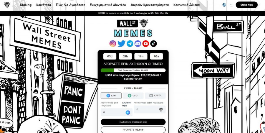 Ο επενδυτικός κόσμος το 2023 βρίσκεται στην αναζήτηση του meme κρυπτονομίσματος που μπορεί να δημιουργήσει εκατομμυριούχους. Το Wall streets memes φαίνεται να έχει όλες τις προοπτικές για να γίνει το νέο κρυπτονόμισμα που θα εκραγεί. Σατιρίζοντας το κυνήγι του χρήματος, αυτό το κρυπτονόμισμα δίνει τη δυνατότητα δημιουργίας viral memes ενάντια στο ενορχηστρωμένο μονοπώλιο των χρηματοπιστωτικών αγορών της Wall Street.