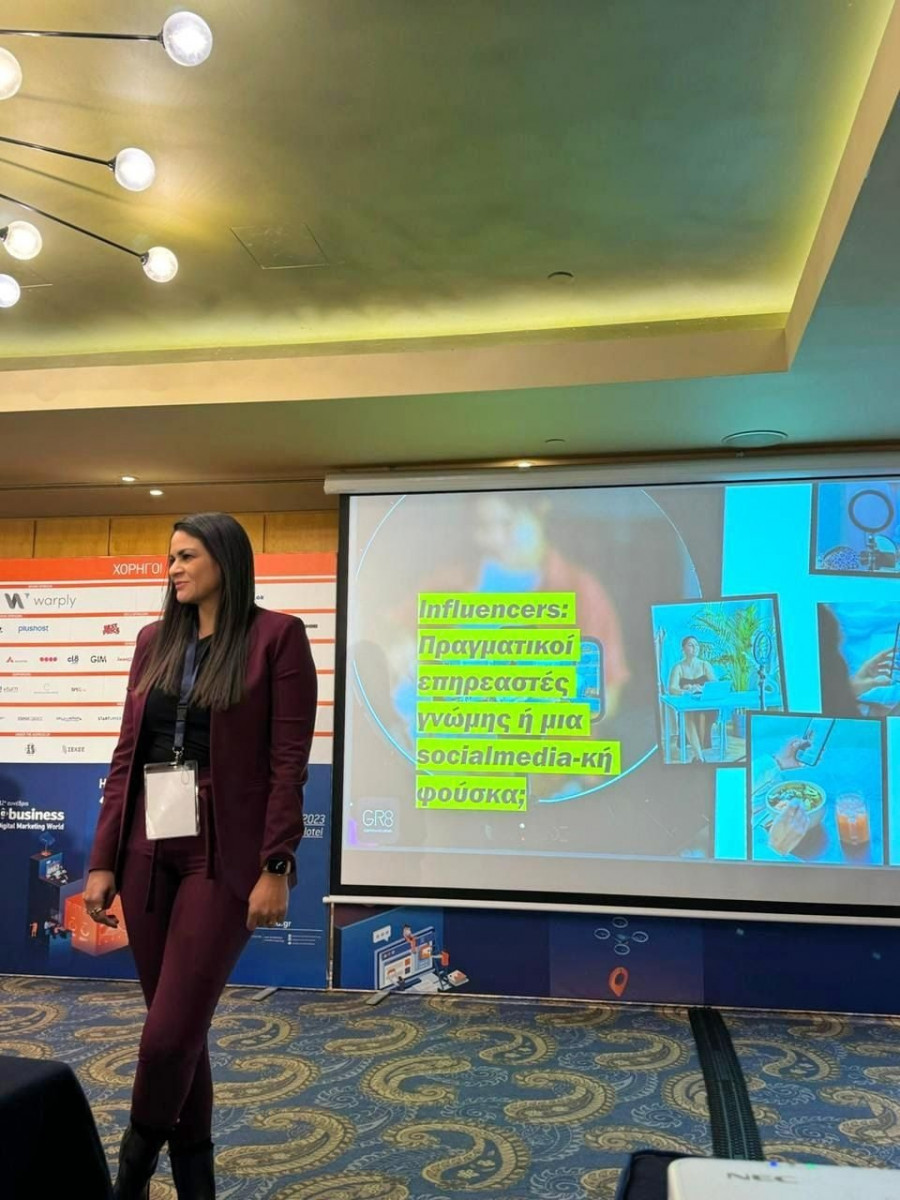 Την Παρασκευή 8 Δεκεμβρίου, η Τίνα Μιχαηλίδου άνοιξε το παράθυρο στην συναρπαστική συζήτηση για τους influencers στο 12ο e-Business World & Digital Marketing 2023, το οποίο έλαβε χώρα στο ξενοδοχείο Wyndham Grand Athens, παρουσιάζοντας μια θεματική που προβληματίζει όλες τις εταιρείες που θέλουν να ασχοληθούν με το ψηφιακό marketing και με το ερώτημα που βασανίζει όλα τα brands το 2023: "Influencers: Πραγματικοί Επηρεαστές ή Socialmedia-κη Φούσκα;".