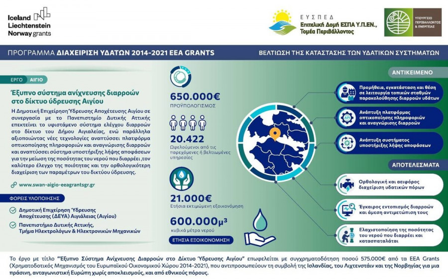 Το συγκεκριμένο έργο επωφελείται με χρηματοδότηση ποσού 574.979,03 € από Χρηματοδοτικός Μηχανισμός 2014–2021 του Ευρωπαϊκού Οικονομικού Χώρου (ΧΜ-ΕΟΧ | EEA Grants) εκπροσωπεί τη συνεισφορά της Ισλανδίας, Λιχτενστάιν και Νορβηγίας αποσκοπώντας στην στήριξη ευρωπαϊκών χωρών, για μια πράσινη, ανταγωνιστική Ευρώπη χωρίς αποκλεισμούς.