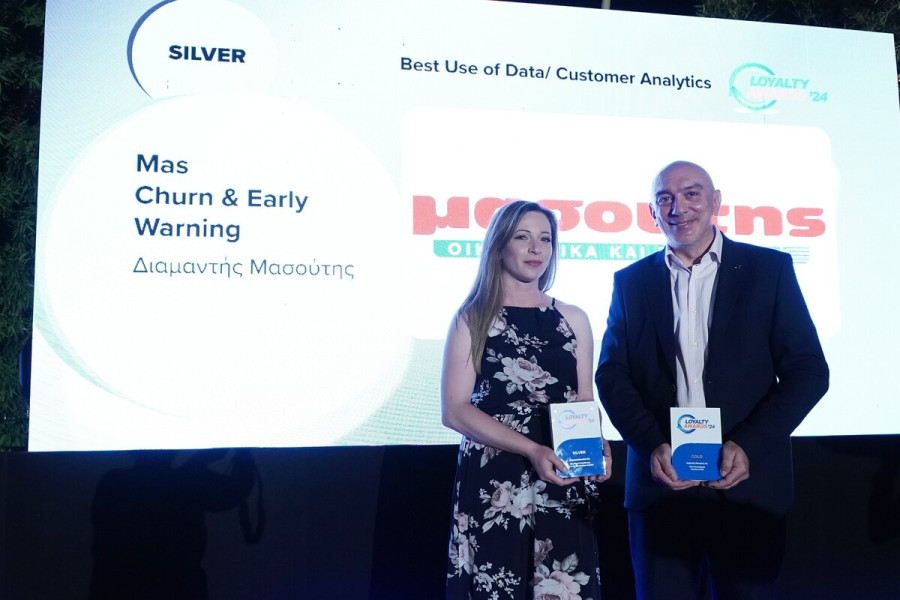 • Silver βραβείο στην κατηγορία Best Use of Data/ Customer Analytics για το Mas-Churn & Early Warning. Πρόκειται για ένα έργο που περιλαμβάνει ανάλυση σε βάθος των δεδομένων πωλήσεων, καταναλωτικής συμπεριφοράς και αγοραστικών προφίλ πελατών και ανάπτυξη μοντέλου που εντοπίζει High Churn Probability και την αντιμετωπίζει.