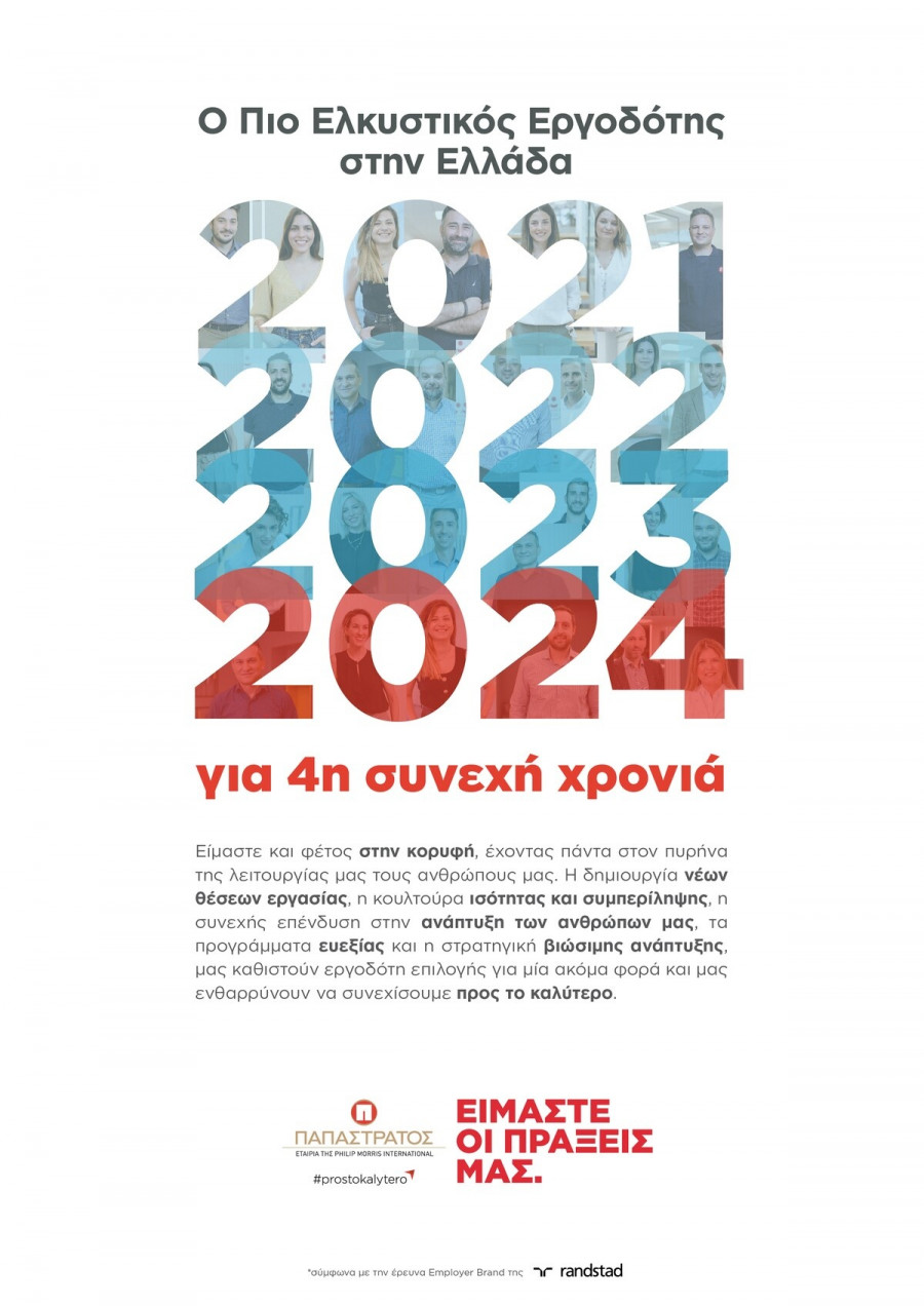 H Παπαστράτος στην 1η θέση ως ο Πιο Ελκυστικός Εργοδότης στην Ελλάδα για το 2024, σύμφωνα με την έρευνα Randstad Employer Brand