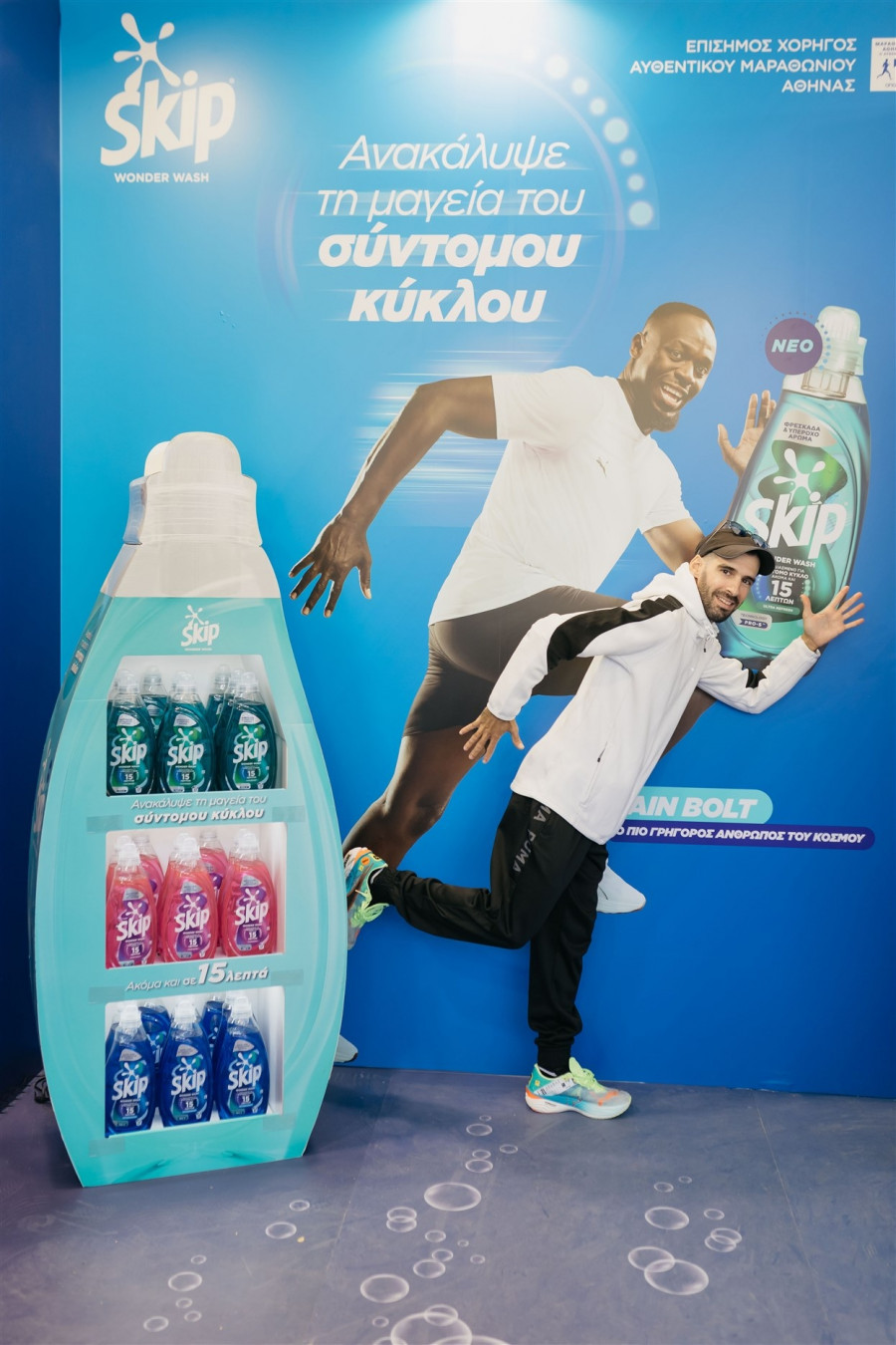 Ακριβώς έξω από την είσοδο του Καλλιμάρμαρου, στο «Sponsors Village», το Skip είχε κατασκευάσει ένα πραγματικά εντυπωσιακό περίπτερο. Εκεί, το κοινό είχε την ευκαιρία να ενημερωθεί και να λάβει δείγματα από τη νέα σειρά Skip Wonder Wash, που είναι ειδικά σχεδιασμένη για τον σύντομο κύκλο πλύσης, ακόμα και 15 λεπτών. Πρόκειται για ένα επαναστατικό προϊόν με ambassador της καμπάνιας τον Usain Bolt, τον πιο γρήγορο άνθρωπο στον κόσμο!