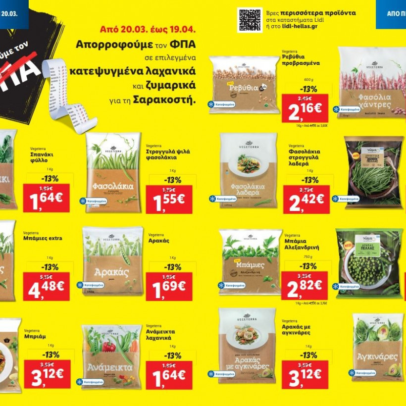 H Lidl Ελλάς απορροφά τον ΦΠΑ σε επιλεγμένα κατεψυγμένα λαχανικά και ζυμαρικά για τη Σαρακοστή