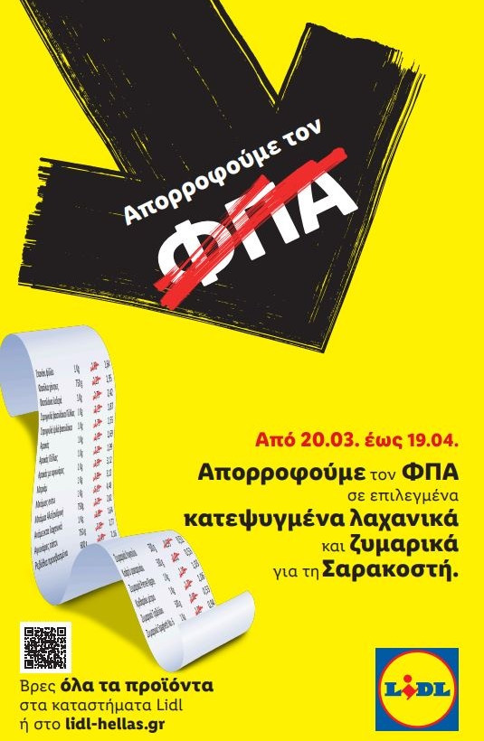 Αναγνωρίζοντας τη συνεχιζόμενη πίεση στα εισοδήματα των Ελλήνων καταναλωτών, η Lidl Ελλάς προχωρά σε μία ακόμα ουσιαστική παρέμβαση που διασφαλίζει πως οι πελάτες της μπορούν να απολαμβάνουν ποιοτικά προϊόντα στις ήδη χαμηλές τιμές της εταιρείας, χωρίς επιπλέον κόστος ΦΠΑ.