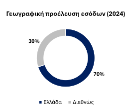 – 70% των εσόδων προήλθε από την ελληνική αγορά, ενώ το 30% προήλθε από τις διεθνείς αγορές.