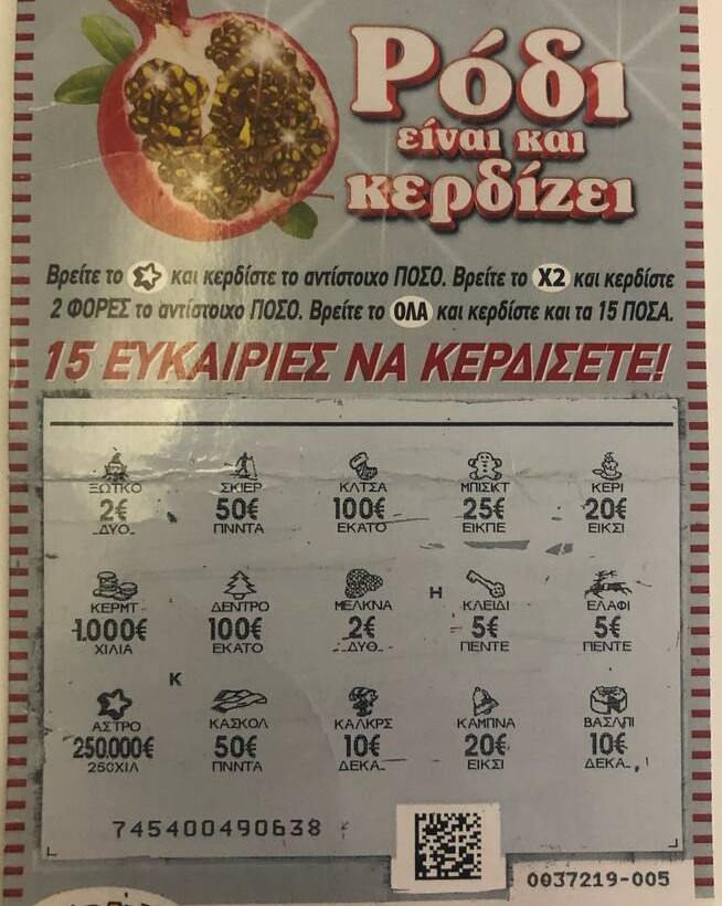 Το «κρεσέντο» κερδών ξεκίνησε με έναν τυχερό που κέρδισε 100.000 ευρώ με ένα δελτίο «Super Γκολ στην Τύχη» αξίας δύο ευρώ. Τα νέα κυκλοφόρησαν στον τύπο κι από στόμα σε στόμα έφτασαν στα αυτιά ενός Αγρινιώτη που πίστεψε ότι θα μπορούσε να κερδίσει κι αυτός. Επέλεξε το εορταστικό παιχνίδι «Ρόδι Είναι και Κερδίζει» και είδε την έμπνευσή του να επιβεβαιώνεται, αφού κέρδισε 250.000 ευρώ με πέντε ευρώ. Το τρίτο χτύπημα της τύχης ήρθε με ένα δελτίο «Χρυσές Λίρες» των 3 ευρώ που χάρισε σε έναν άλλο κάτοικο της περιοχής 200.000 ευρώ.