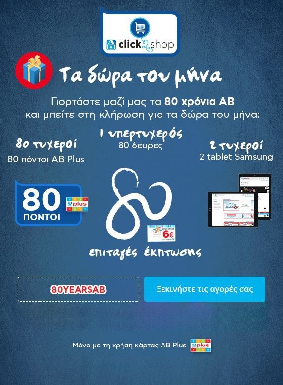 Γιορτάζουμε μαζί τα 80 χρόνια ΑΒ με τα «Δώρα του μήνα» μόνο στο AB Click2Shop