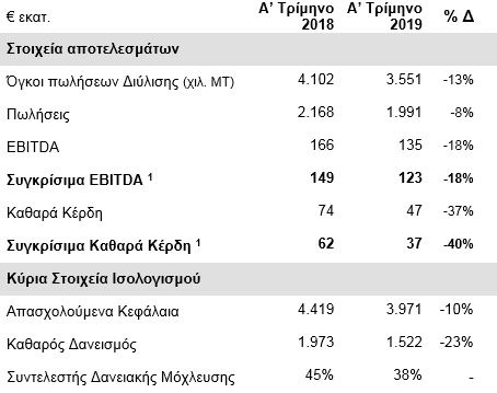 ΒΑΣΙΚΑ ΜΕΓΕΘΗ ΕΝΟΠΟΙΗΜΕΝΩΝ ΑΠΟΤΕΛΕΣΜΑΤΩΝ ΧΡΗΣΗΣ Α’ ΤΡΙΜΗΝΟΥ 2019 (σύμφωνα με τα Διεθνή Πρότυπα Χρηματοοικονομικής Πληροφόρησης)