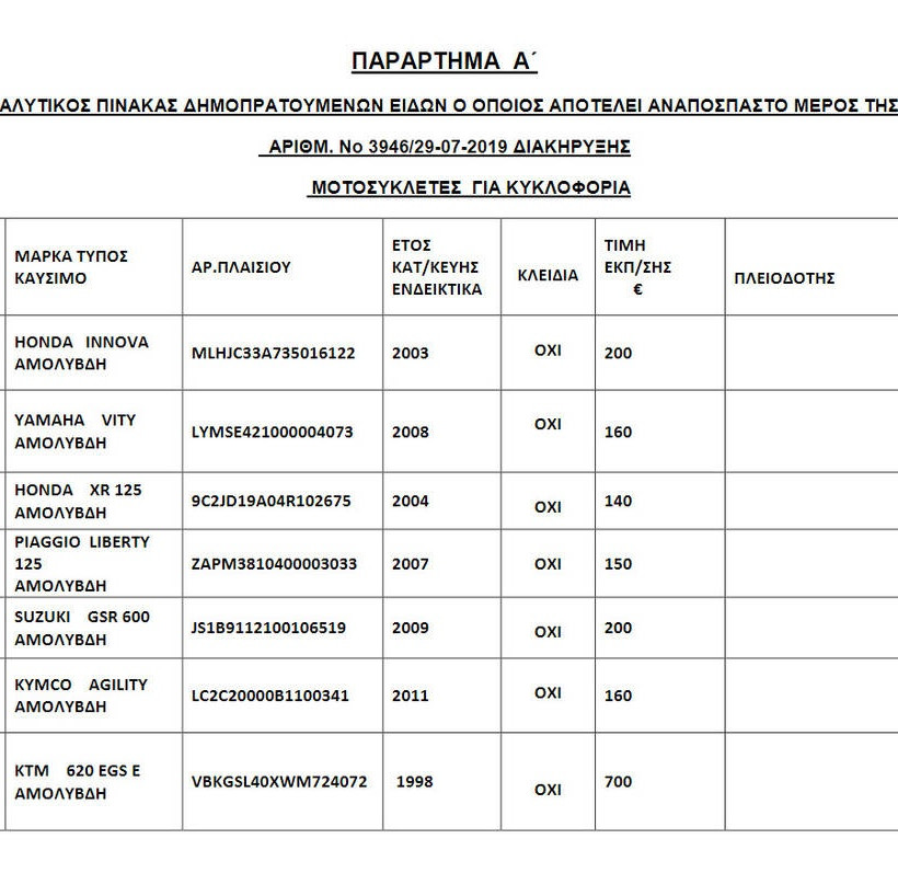 Διαβάστε ΕΔΩ, ολόκληρη τη διακήρυξη δημοπρασίας οχημάτων από τον πρώην ΟΔΔΥ