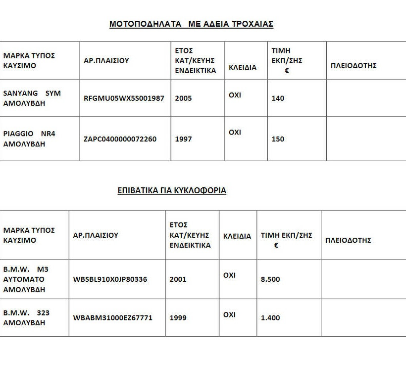 Αγοράστε σήμερα (29/7) αυτοκίνητο από 300 ευρώ - Δείτε όλη τη λίστα (pics)