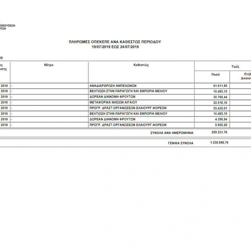 Πιο συγκεκριμένα, ο οργανισμός από τις 19/07/2019 έως τις 24/07/2019, κατέβαλε σε 437 δικαιούχους το ποσό του 1.538.998,76 ευρώ.