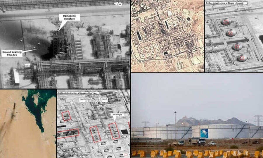 Νωρίτερα σήμερα, η αμερικανική κυβέρνηση έδωσε στη δημοσιότητα δορυφορικές φωτογραφίες από τις επιθέσεις κατά των εγκαταστάσεων στη Σαουδική Αραβία, υποστηρίζοντας ότι αποδεικνύουν την εμπλοκή της Τεχεράνης.