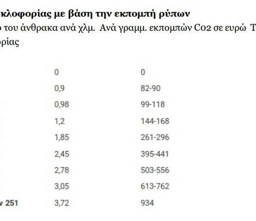 Η πραγματική κατάσταση σε σχέση με τα τέλη και τους ρύπους, όπως έχουμε γράψει και στο παρελθόν έχει ως εξής: από τον Οκτώβριο του 2010 τα τέλη κυκλοφορίας των καινούργιων αυτοκινήτων που ταξινομούνται στη χώρα μας υπολογίζονται με βάση τις εκπομπές CO2 τους και με τη χρήση των συντελεστών της αντίστοιχης κλίμακας. Για τα αυτοκίνητα που έχουν ταξινομηθεί πριν από τον Οκτώβριο του 2010 ο υπολογισμός των τελών γίνεται αποκλειστικά με τα κυβικά του κινητήρα τους και τους φορολογήσιμους ίππους που προκύπτουν από αυτά.