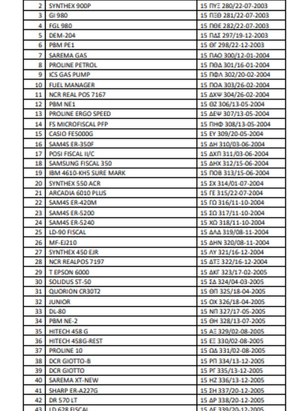 Δείτε στην gallery τον αναλυτικό κατάλογο με τις 179 μάρκες των αποσυρόμενων ταμειακών μηχανών:
