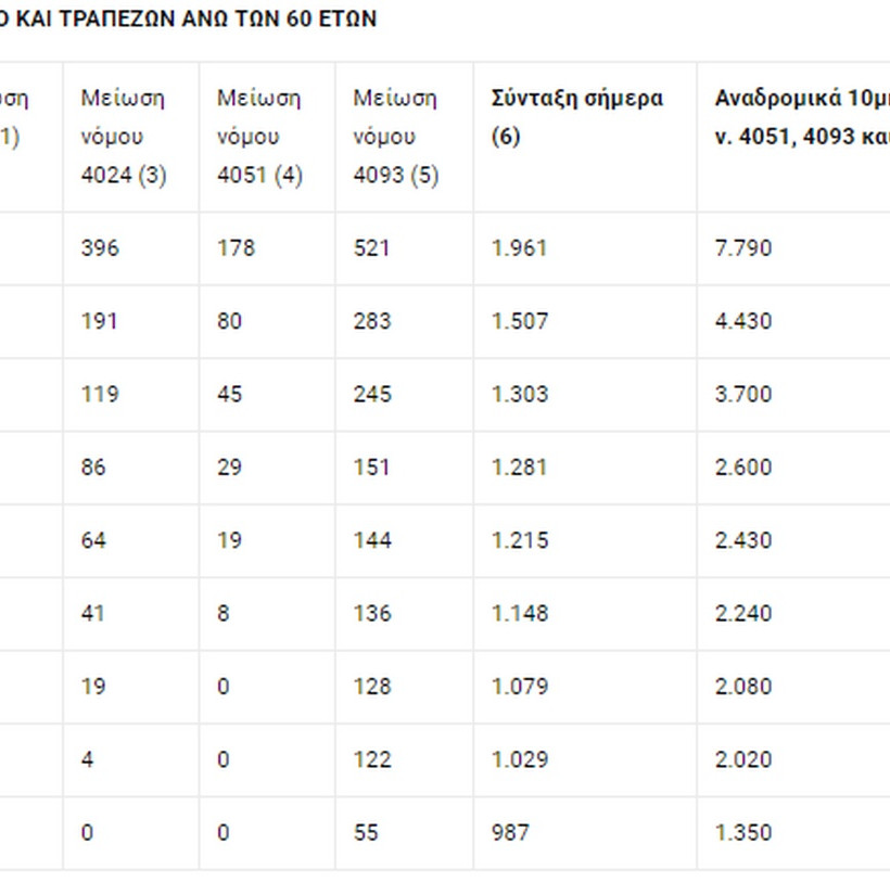 Δείτε αναλυτικούς πίνακες για τα αναδρομικά κυρίων συντάξεων στη gallery που ακολουθεί: