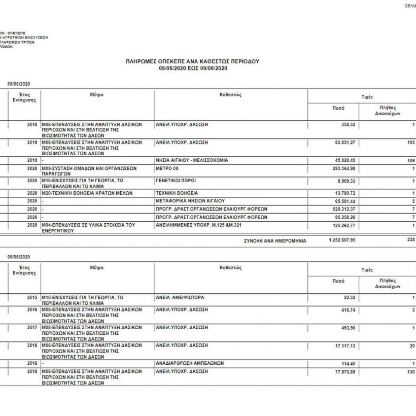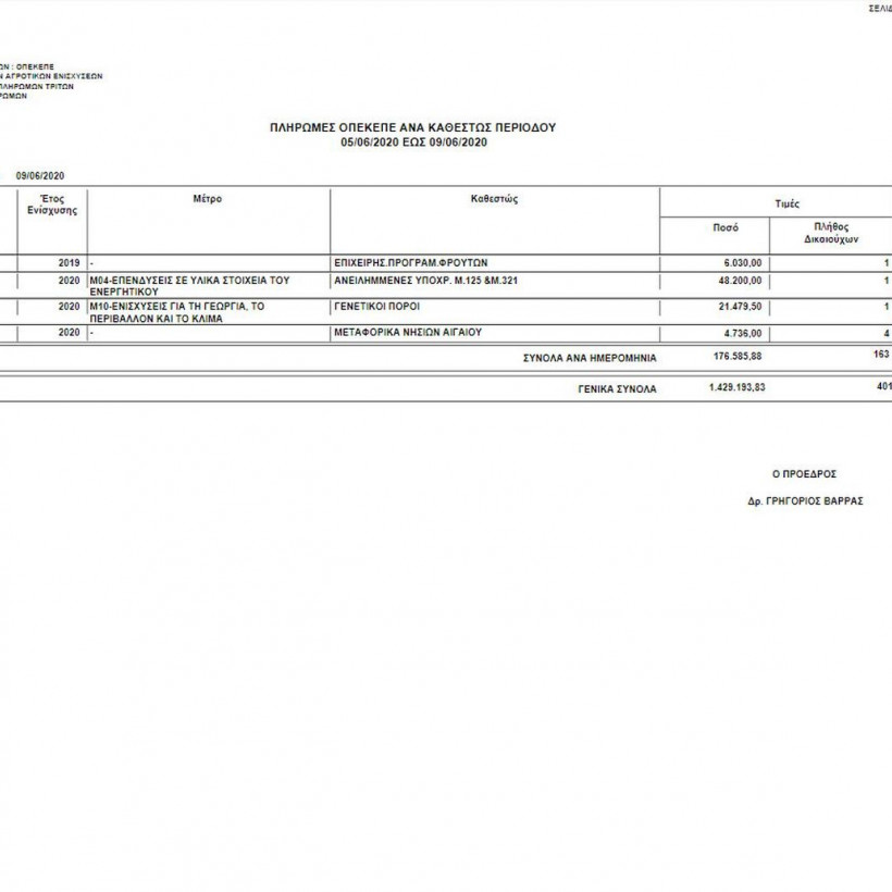 Πιο συγκεκριμένα, ο οργανισμός από 05/06/2020 έως τις 09/06/2020 κατέβαλε σε 401 δικαιούχους το ποσό του 1.429.193,83 ευρώ.