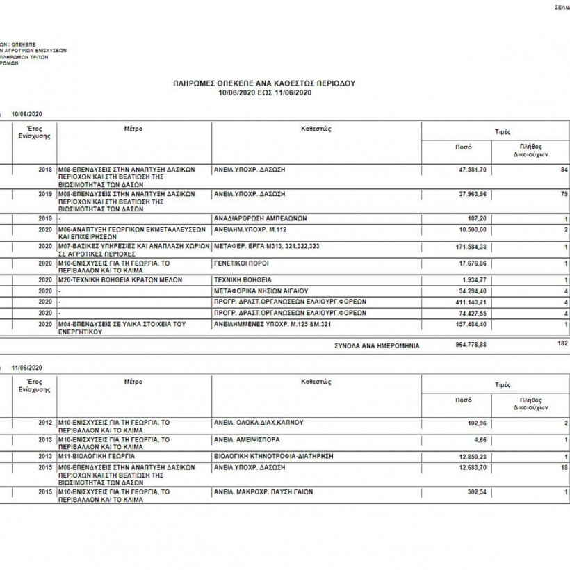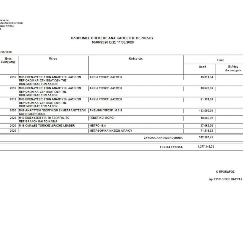Πιο συγκεκριμένα, ο οργανισμός από 10/06/2020 έως τις 11/06/2020 κατέβαλε σε 306 δικαιούχους το ποσό του 1.277.146,33 ευρώ.