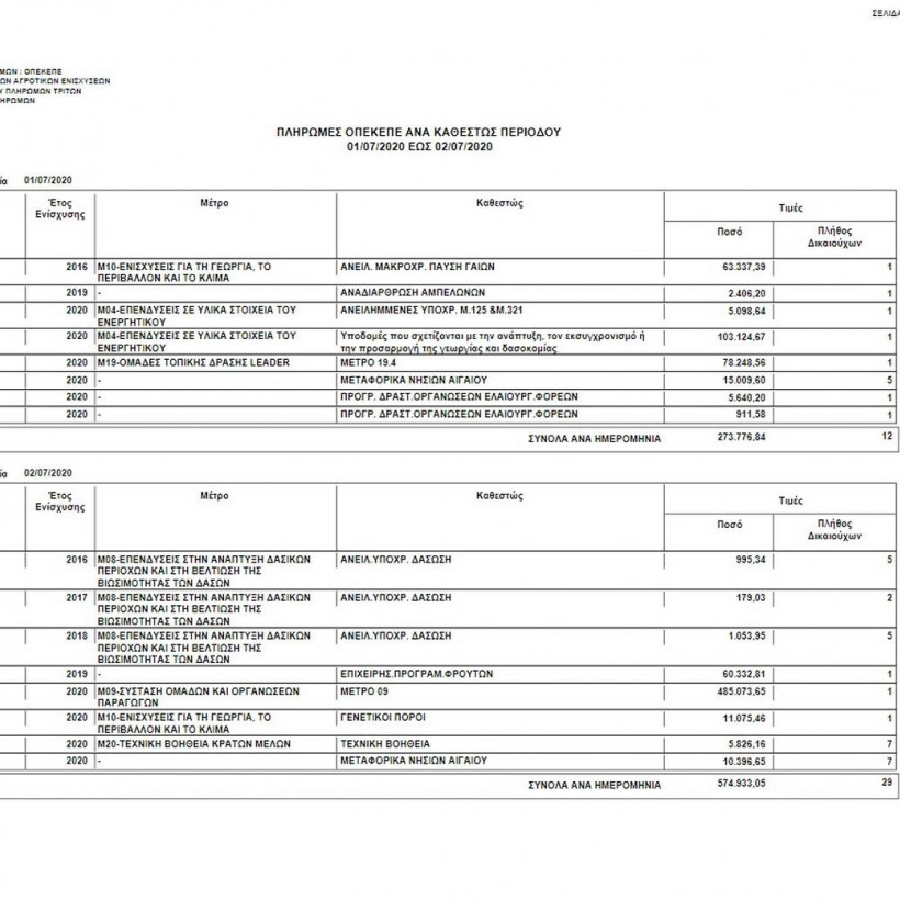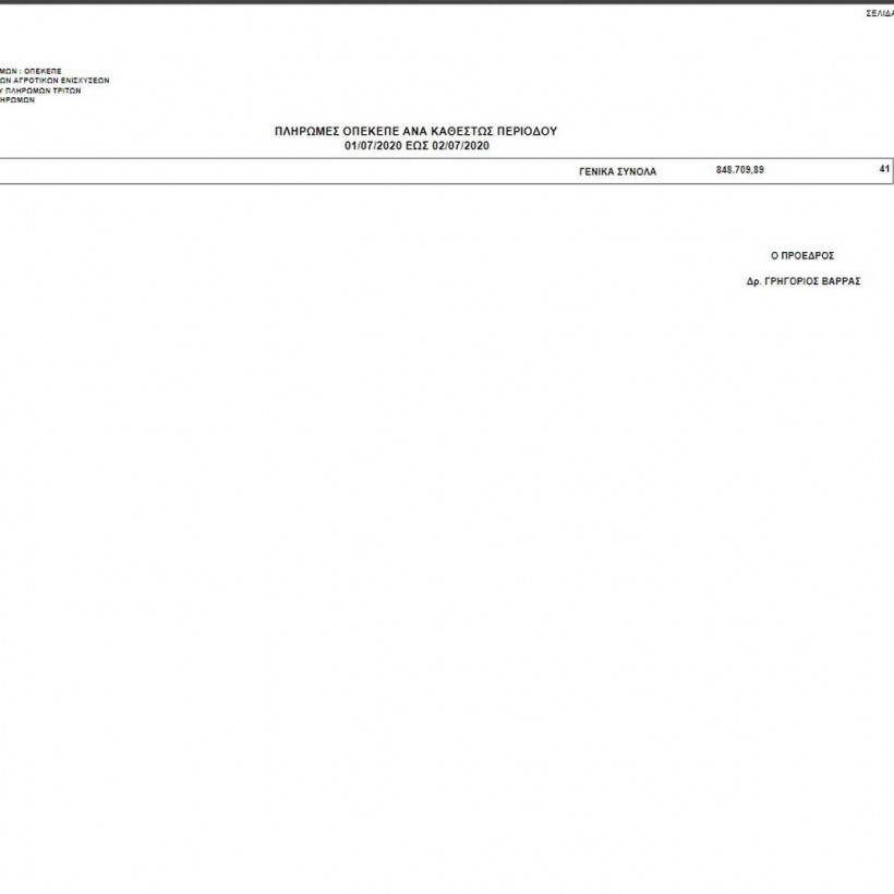 Πιο συγκεκριμένα, ο οργανισμός από 01/07/2020 έως τις 02/07/2020 κατέβαλε σε 41 δικαιούχους το ποσό των 848.709,89 ευρώ.