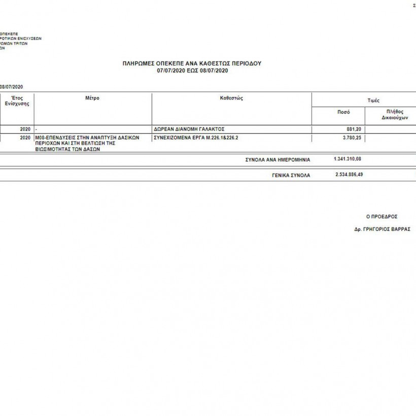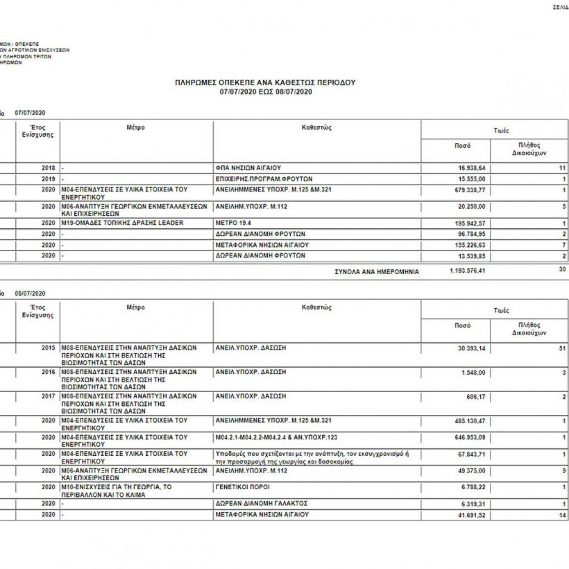 Πιο συγκεκριμένα, ο οργανισμός από 07/07/2020 έως τις 08/07/2020 κατέβαλε σε 116 δικαιούχους το ποσό του 2.534.886,49 ευρώ.