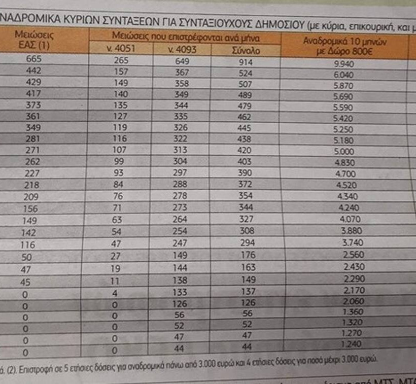 - Η μείωση επικουρικών κατά 5% ως 20% βάσει αθροίσματος με κύριες συντάξεις άνω των 1.000 ευρώ με το νόμο 4093/2012.