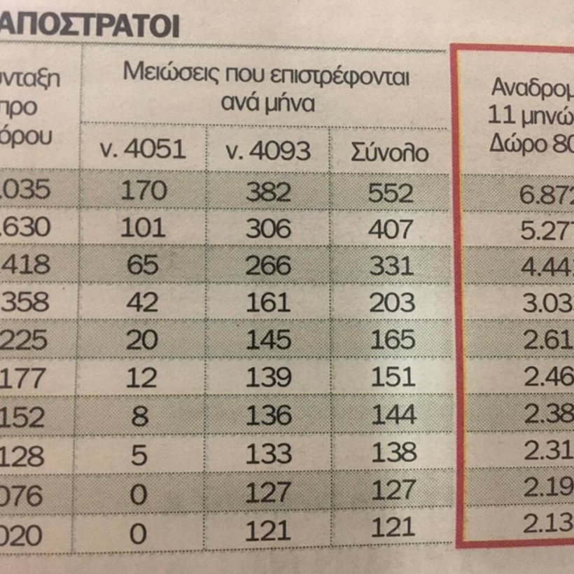 3. Καταβολή των αναδρομικών άτοκα σε όλους τους συνταξιούχους.
