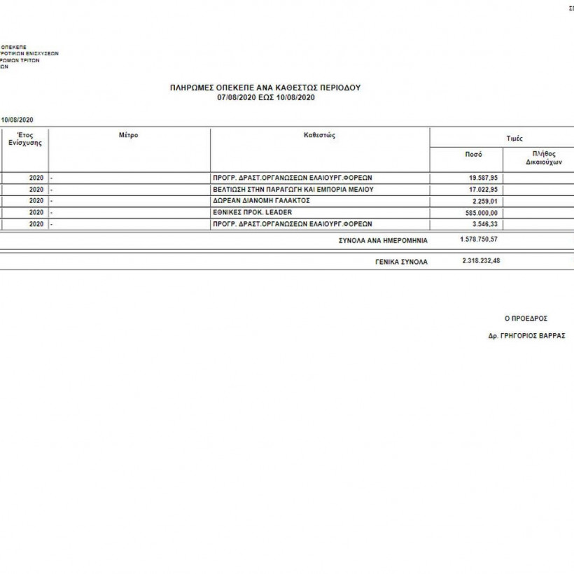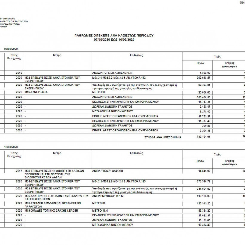 Πιο συγκεκριμένα, ο οργανισμός από 07/08/2020 έως τις 10/08/2020 κατέβαλε σε 111 δικαιούχους το ποσό των 2.318.232,48 ευρώ.
