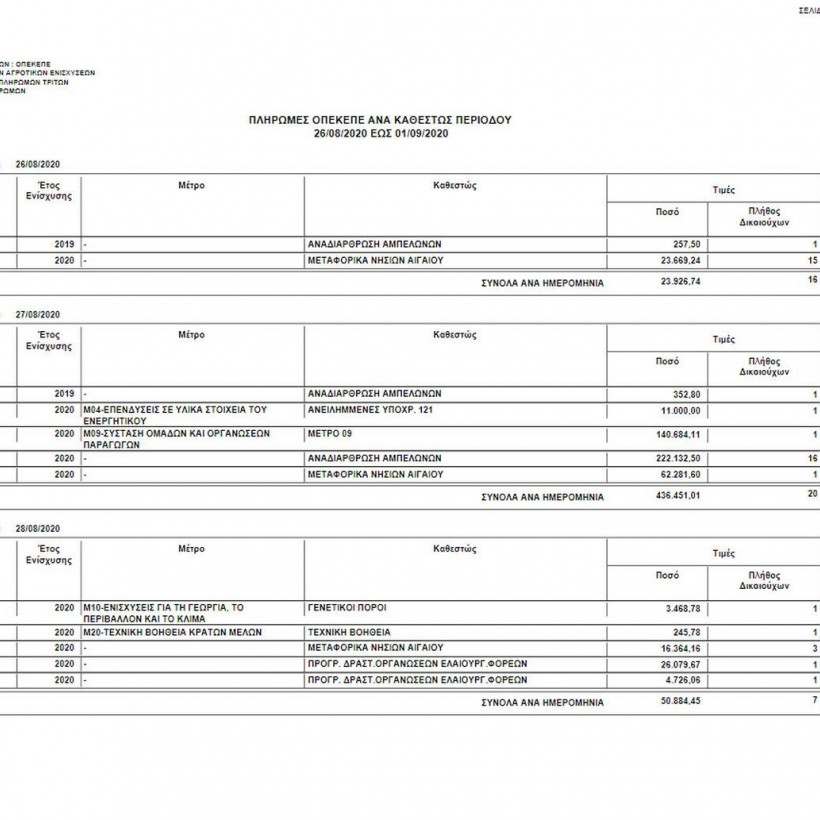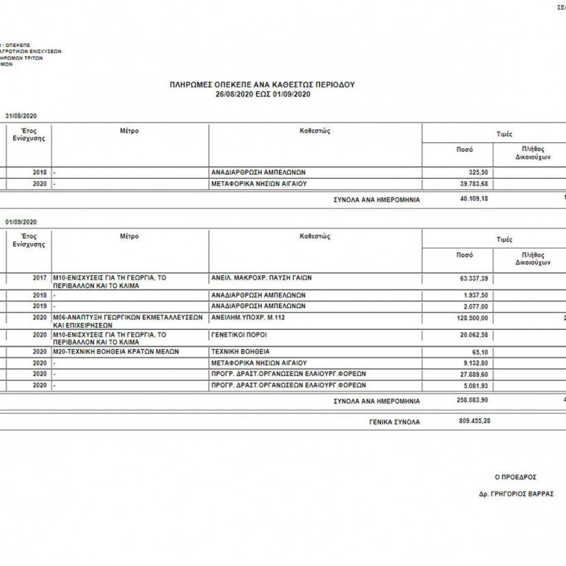 Πιο συγκεκριμένα, ο οργανισμός από 26/08/2020 έως τις 01/09/2020 κατέβαλε σε 98 δικαιούχους το ποσό των 809.455,28 ευρώ.