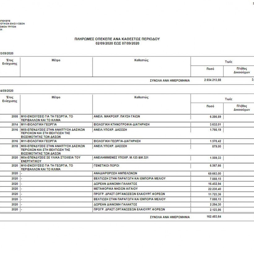 Πιο συγκεκριμένα, ο οργανισμός από 02/09/2020 έως τις 07/09/2020 κατέβαλε σε 3.745 δικαιούχους το ποσό των 7.115.174,04 ευρώ.