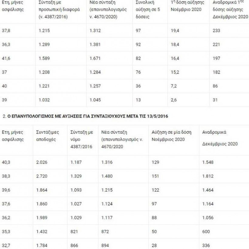 Πίνακες για τα αναδρομικά: