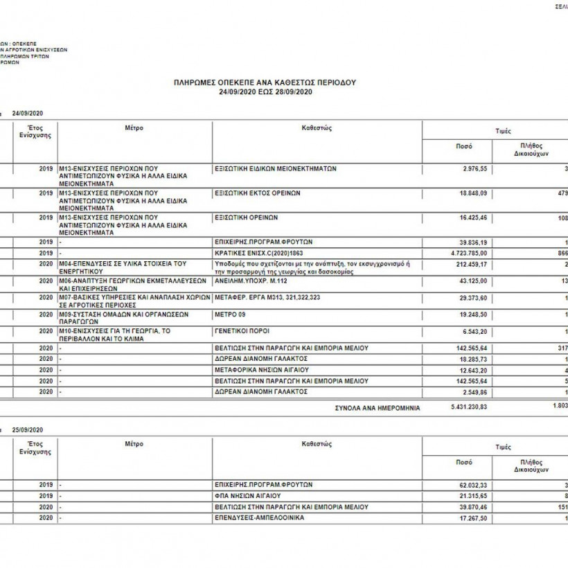 Πιο συγκεκριμένα, ο οργανισμός από 24/09/2020 έως τις 28/09/2020 κατέβαλε σε 2.032 δικαιούχους το ποσό των 8.888.999,78 ευρώ.