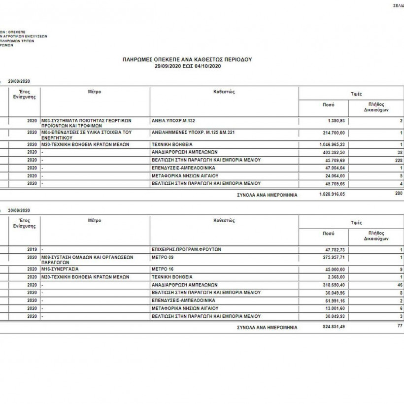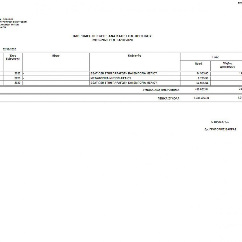 Πιο συγκεκριμένα, ο οργανισμός από 29/09/2020 έως τις 04/10/2020 κατέβαλε σε 1.596 δικαιούχους το ποσό των 7.386.474,34 ευρώ.