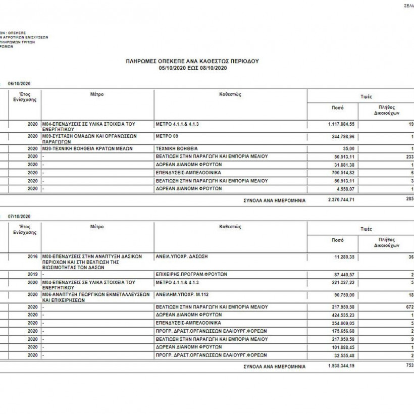 Πιο συγκεκριμένα, ο οργανισμός από 5/10/2020 έως τις 08/10/2020 κατέβαλε σε 2.432 δικαιούχους το ποσό των 7.386.474,34 ευρώ.