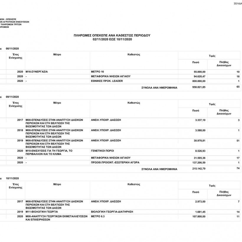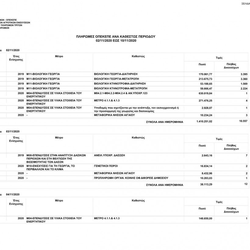 Πιο συγκεκριμένα, ο οργανισμός από 02/11/2020 έως τις 10/11/2020 κατέβαλε σε 10.805 δικαιούχους το ποσό των 3.932.729,99 ευρώ.