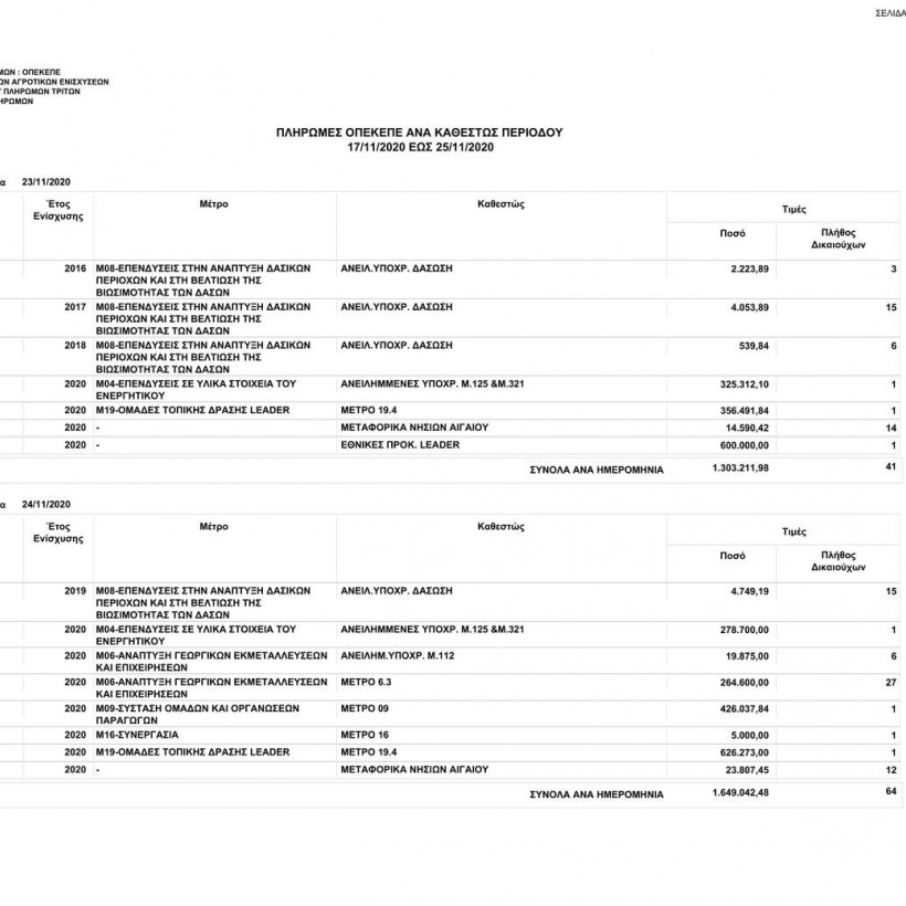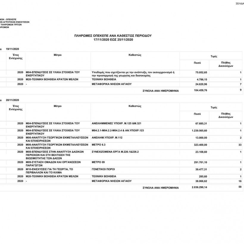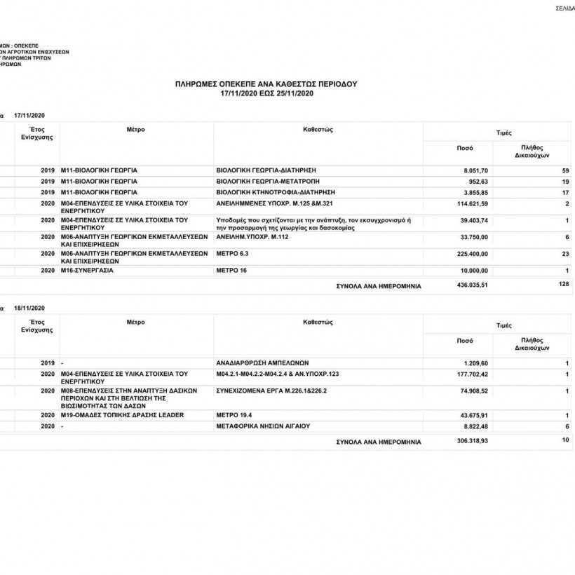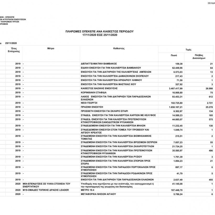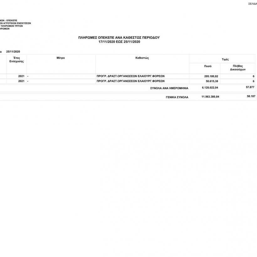 Πιο συγκεκριμένα, ο οργανισμός από 17/11/2020 έως τις 25/11/2020 κατέβαλε σε 58.187 δικαιούχους το ποσό των 11.963.380,84 ευρώ.