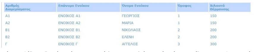 Ο χρήστης μπορεί να επιλέξει το διαμέρισμά του και αυτό θα μεταφερθεί στην αίτησή του γεμίζοντας τις πληροφορίες των χιλιοστών θέρμανσης και του ορόφου, χωρίς να υπάρχει δυνατότητα επεξεργασίας τους: