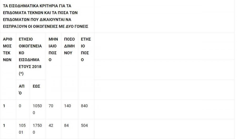 α) Εγγαμος μισθωτός εργαζόμενος σε ιδιωτική επιχείρηση, με δύο εξαρτώμενα ανήλικα τέκνα και ετήσιο φορολογητέο εισόδημα 35.000 ευρώ το 2019 δεν είχε δικαίωμα είσπραξης επιδόματος τέκνων από τον ΟΠΕΚΑ το 2020. Ο λόγος είναι ότι το ετήσιο εισόδημά του για το 2019 ήταν υψηλότερο από το ανώτατο εισοδηματικό όριο καταβολής του επιδόματος αυτού στις οικογένειες με δύο εξαρτώμενα τέκνα, το οποίο ανέρχεται σε 30.000 ευρώ. Το 2020, λόγω αναστολής της λειτουργίας της επιχείρησης στην οποία εργάζεται για 6 μήνες συνολικά, η σύμβαση εργασίας του ανεστάλη και ελάμβανε, αντί των κανονικών μισθών του, αποζημιώσεις ειδικού σκοπού αφορολόγητες και μη συνυπολογιζόμενες στο ετήσιο φορολογητέο του εισόδημα. Ως εκ τούτου, το ετήσιο φορολογητέο εισόδημά του μειώθηκε κατά 50% το 2020 και περιορίστηκε στις 17.500 ευρώ. Εξαιτίας της σημαντικής αυτής μείωσης του ετήσιου φορολογητέου εισοδήματός του για το 2020, θα καταστεί φέτος, με βάση τη φορολογική δήλωση που θα υποβάλει για το 2020, δικαιούχος είσπραξης επιδομάτων τέκνων συνολικού ύψους 1.008 ευρώ σε ετήσια βάση ή 168 ευρώ σε διμηνιαία βάση ή 84 ευρώ σε μηνιαία βάση!
