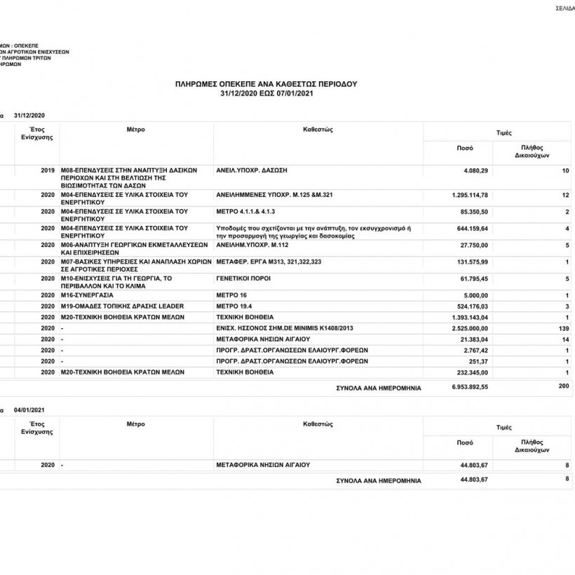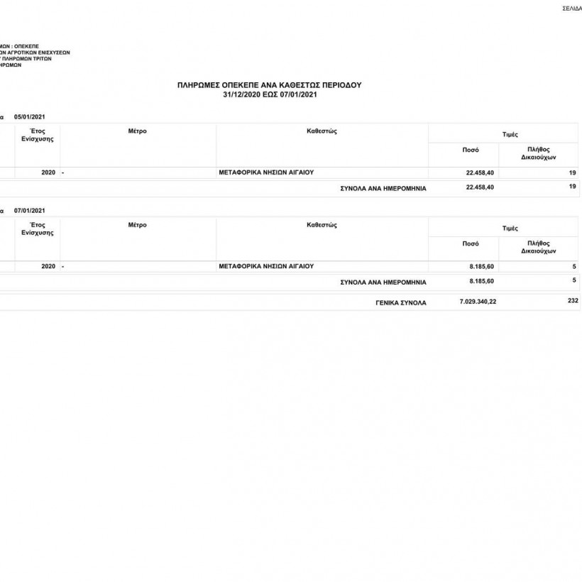 Πιο συγκεκριμένα, ο οργανισμός από 31/12/2020 έως τις 07/01/2021 κατέβαλε σε 232 δικαιούχους το ποσό των 7.029.340,22 ευρώ.