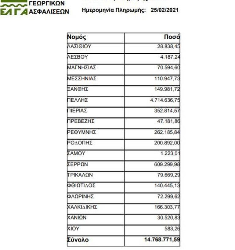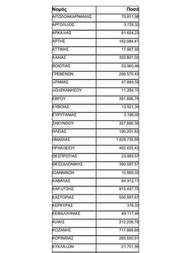 Δείτε στην gallery που ακολουθεί τη λίστα με τις πληρωμές ανά νομό: