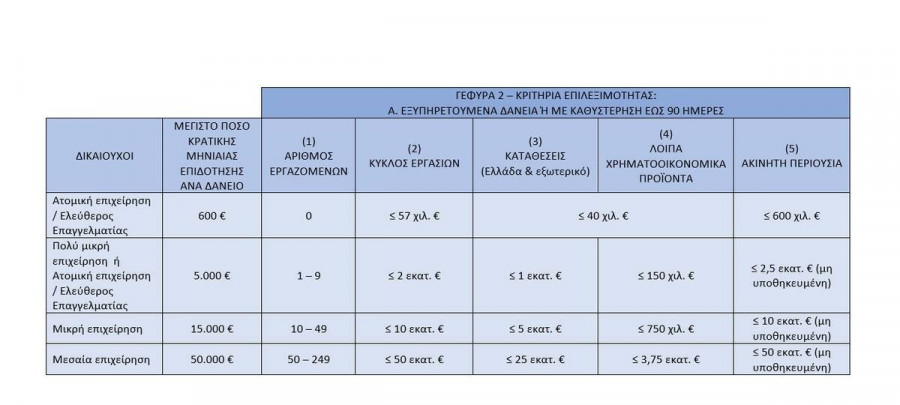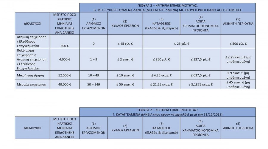 - Για μικρή επιχείρηση που απασχολεί 10 έως 49 εργαζομένους και έχει εξυπηρετούμενο δάνειο τα κριτήρια είναι τα εξής:
