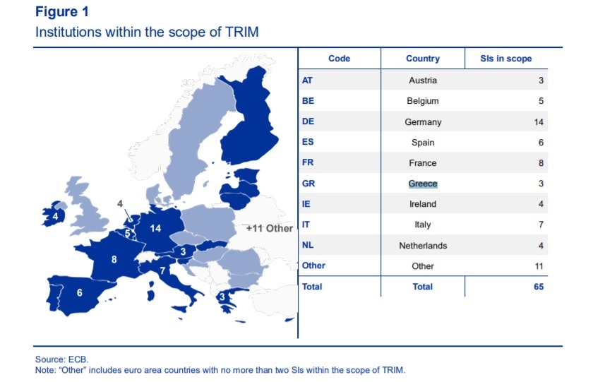 Η διενέργεια 200 επιτόπιων επιθεωρήσεων σε 65 σημαντικές τράπεζες - εκ των οποίων οι 3 ελληνικές - που χρησιμοποιούν εσωτερικά υποδείγματα καθιστά την TRIM το μεγαλύτερο έργο που πραγματοποιήθηκε ποτέ από την Τραπεζική Εποπτεία της ΕΚΤ.