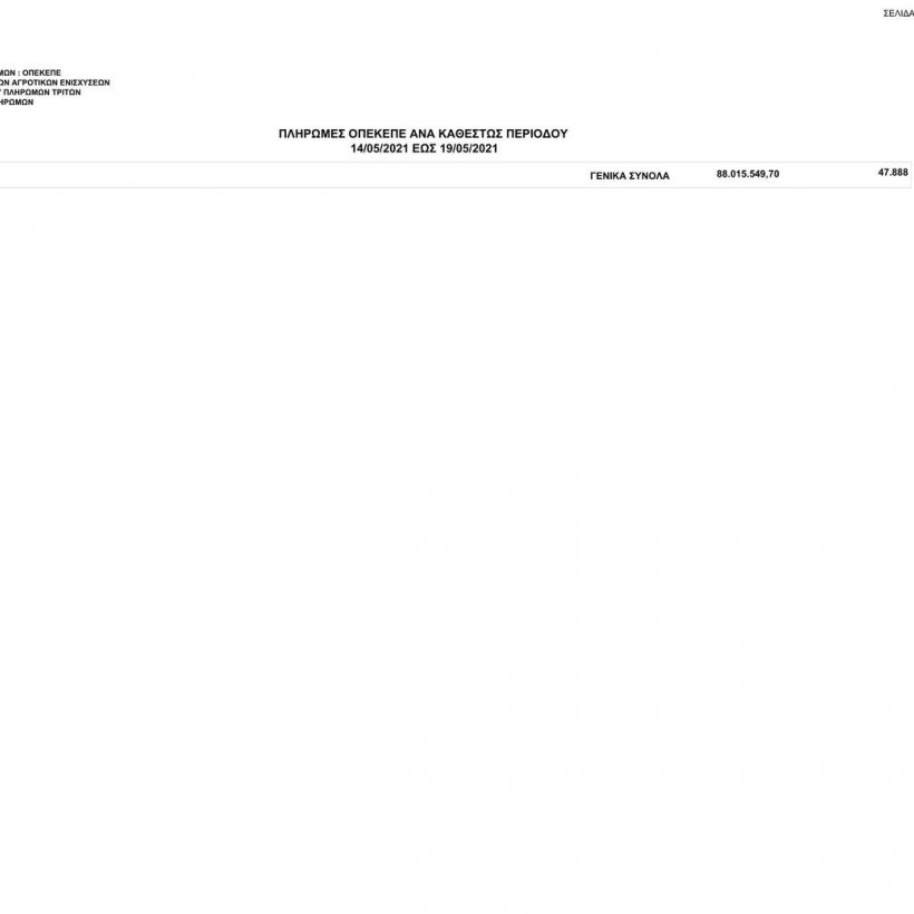 ΟΠΕΚΕΠΕ: Τεράστια πληρωμή ύψους 88 εκατ. ευρώ σε 47.888 δικαιούχους (πίνακες με ποσά)