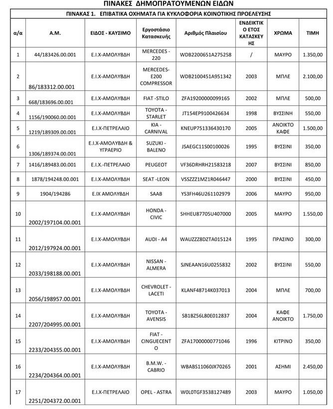 Στις τιμές εκποίησης των οχημάτων συμπεριλαμβάνεται ο αναλογών Φ.Π.Α.