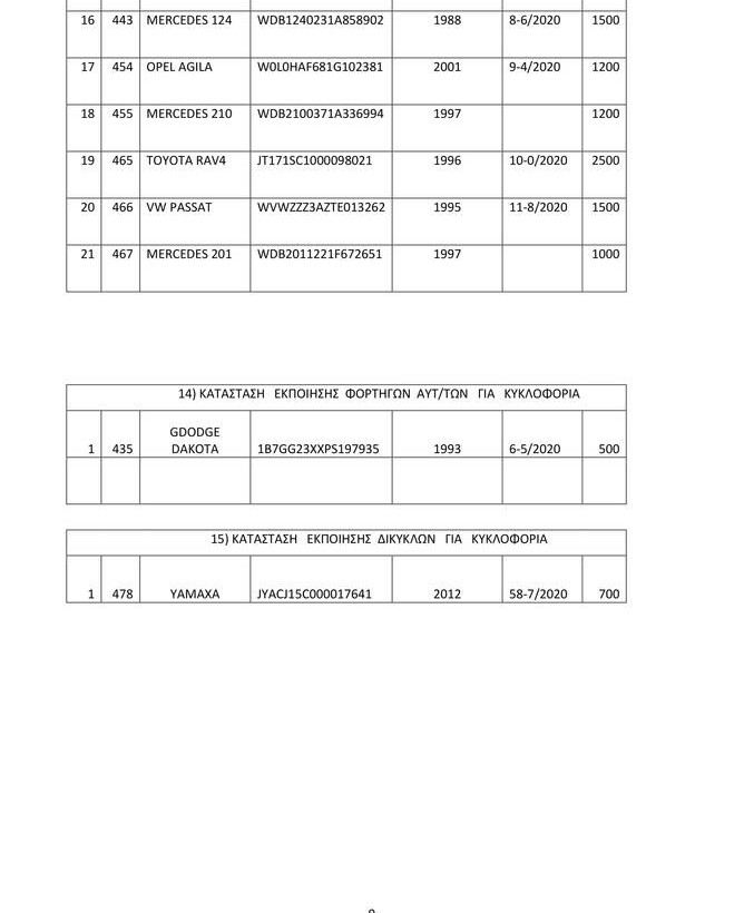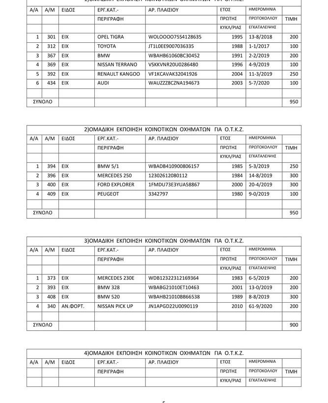 Στις τιμές εκποίησης των οχημάτων συμπεριλαμβάνεται ο αναλογών Φ.Π.Α.